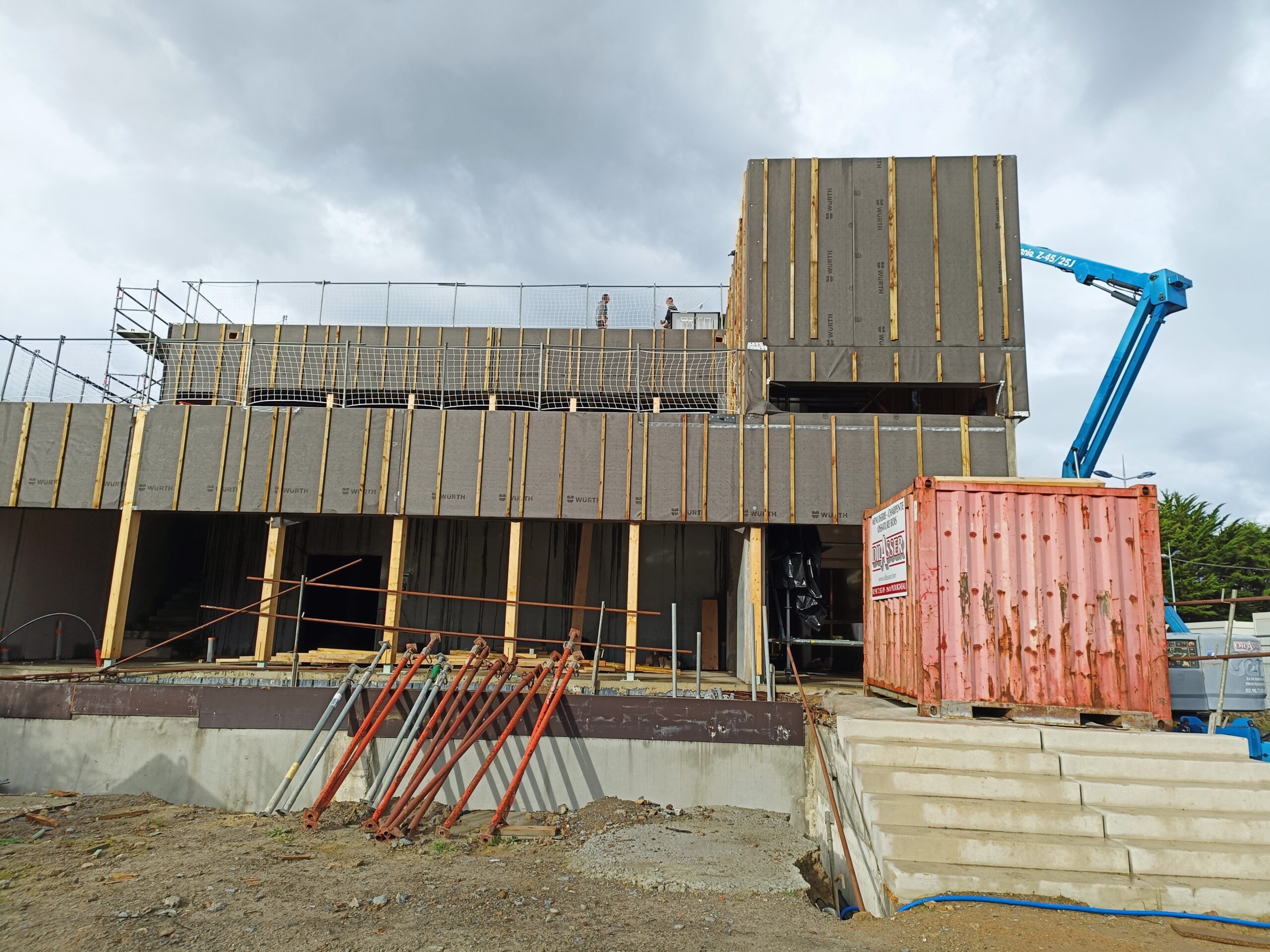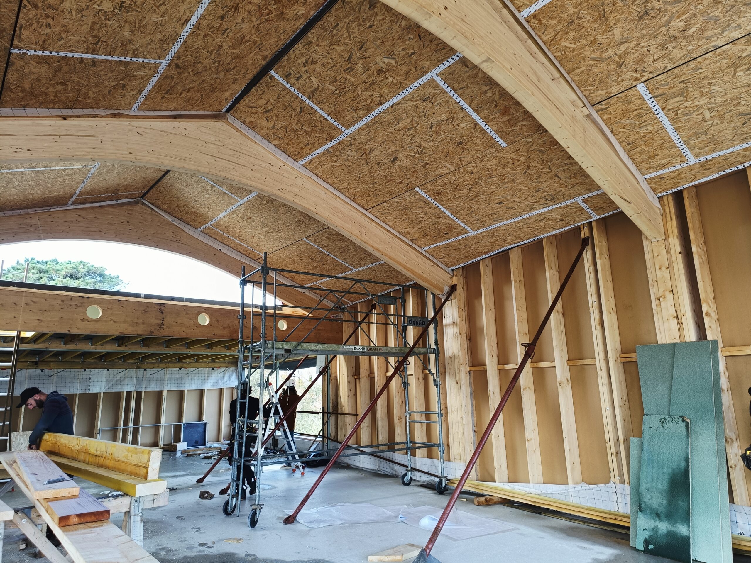 - Une intégration de matériaux biosourcés : recours au bois local en structure et en bardage (pin douglas ou chêne pour le bardage et pin douglas pour les charpentes) ; isolation en ouate de cellulose issue du recyclage des papiers/journaux.
