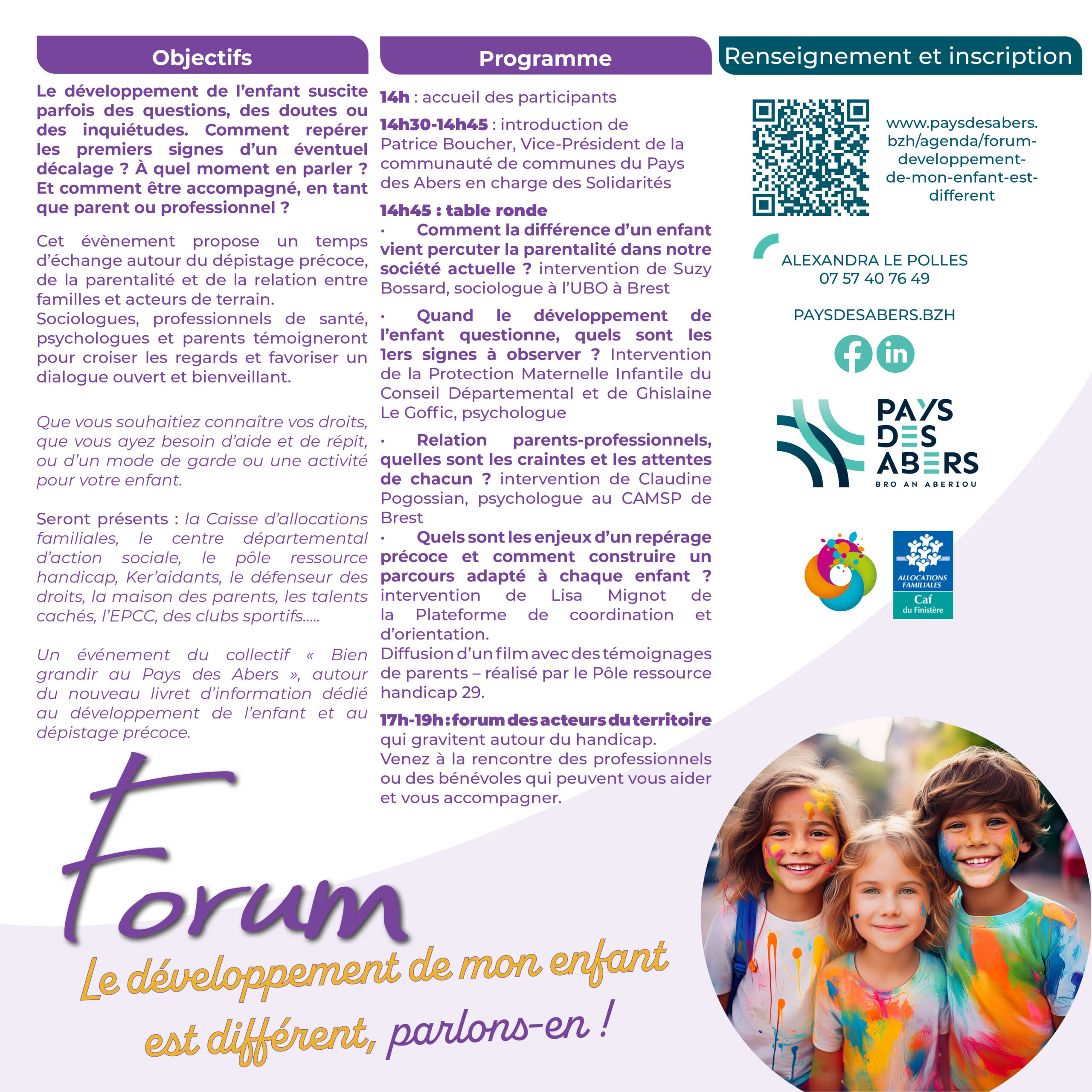 Cet événement marquera le lancement du livret “Bien grandir au Pays des Abers”, fruit d’un travail collectif mené avec le Pôle Ressource Handicap, la CAF, l’association EPAL et les communes partenaires du territoire.