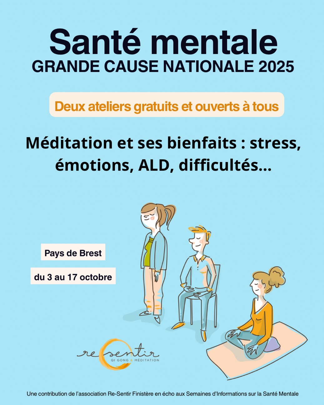 À l’occasion de « 2025 année de la santé mentale » et en écho aux « Semaines d’Informations sur la Santé Mentale », l’association Re-Sentir propose 2 ateliers gratuits et accessibles à tous :