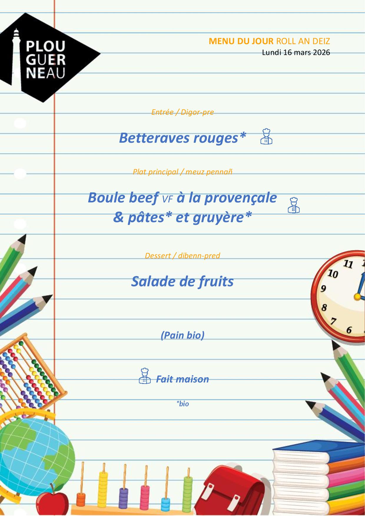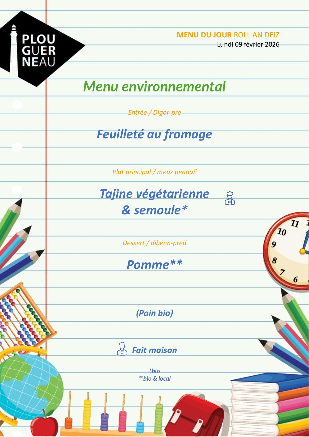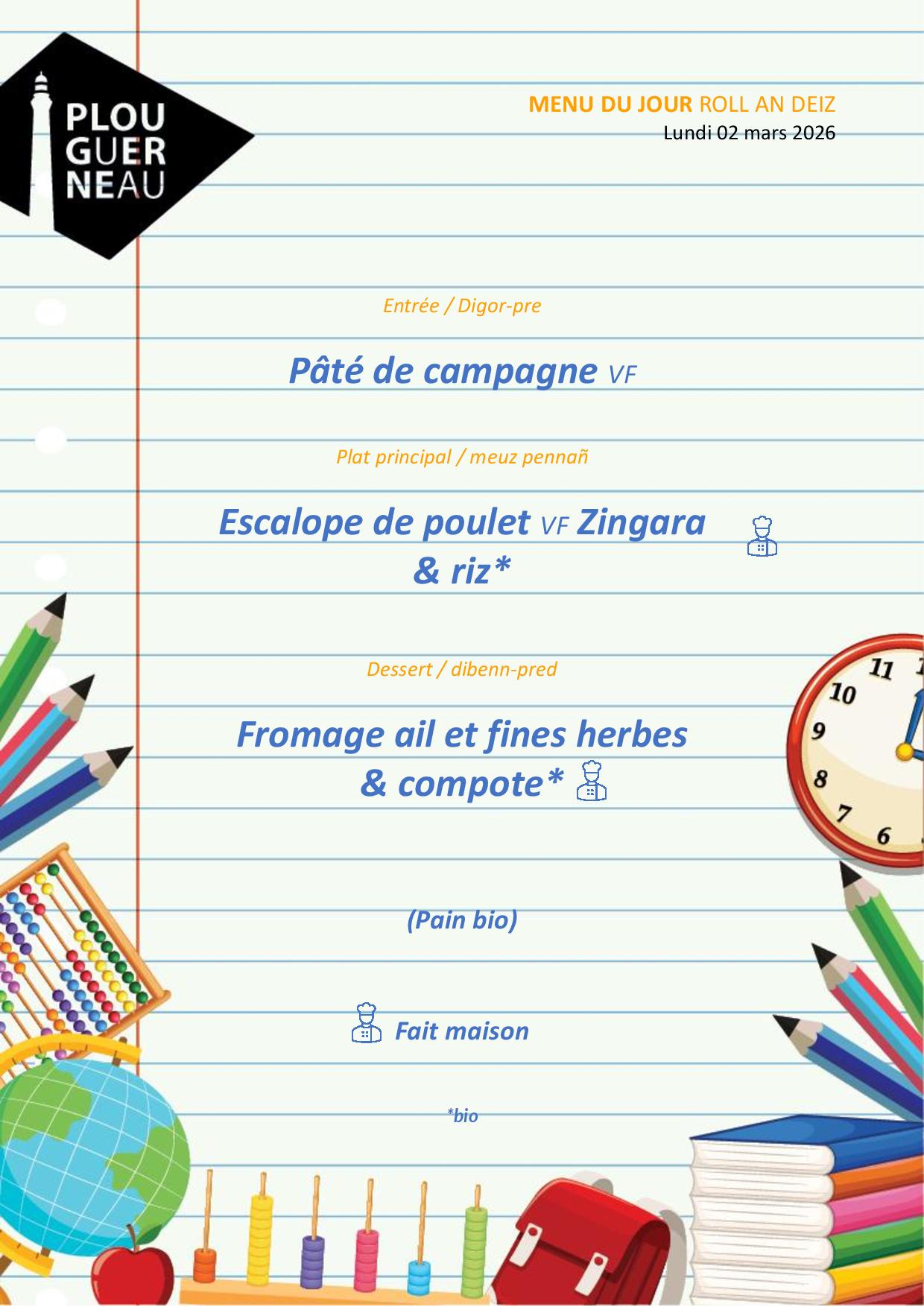 Que mange-t-on ce mois-ci à la cantine ?